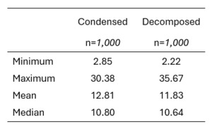In the experiment, the “condensed” survey question captures response(s) in a single grid and asks for data that could reasonably be collected by two separate survey questions. Its comparable “decomposed” version has two simpler questions that must be combined during analysis to determine the same information. The experiment captures the time per question, with the time summed across the two questions for the decomposed version. The comparison of the question times and multivariate analyses exploring what factors contributed to longer or shorter times, evaluate whether more screens take more time, even when the questions are simpler to answer.