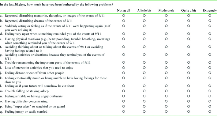 In this paper, we compare traditional and mobile-optimized grid formats on the World Trade Center (WTC) Health Registry’s 2015 health survey. The WTC Health Registry was established in 2002 to monitor the long-term physical and mental health of people exposed to the September 11, 2001 terrorist attack on the WTC in New York City, and to better assess the post-disaster health care needs of survivors (Brackbill et al. 2009; Farfel et al. 2008).