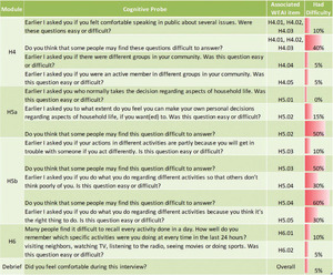 We found that even when respondents are directly asked about difficulties in answering the survey questions, sometimes cognitive difficulties can only be identified through observation.