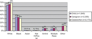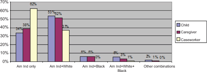 By examining responses to the child race questions in NSCAW, this study identified several findings that add to our understanding of race reporting in surveys from multiple respondent types. First, young children had difficulty reporting their own race. Second, caregivers and children were more likely than caseworkers to report that a child was multiracial. Finally, caregivers and children were more likely than caseworkers to report a child was of American Indian descent. Our findings that children and caregivers were better able than caseworkers to identify children as multiracial and American Indian were consistent with prior research showing that adult self report of race was more reliable than administrative records (Gomez et al. 2005; West, Geiger, Greene, et al. 2005).