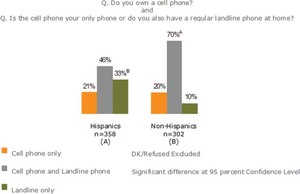 One in five Hispanics are cell phone only users, a proportion similar to non-Hispanics (Note: this study was originally conducted in 2009; this rate is climbing and now much more commonplace). A significant difference between Hispanics and non-Hispanics is evident in terms of landline phone ownership. While 33 percent of Hispanics only own a landline phone and do not have a cell phone, only 10 percent of non-Hispanics are landline only.