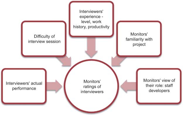 Monitors in both groups discussed five main factors that influenced the ratings they gave to interviewers (Figure 1).